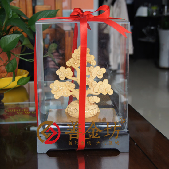 招財(cái)進(jìn)寶 搖錢(qián)樹(shù)絨紗金立體擺件定做 金銀立體擺件