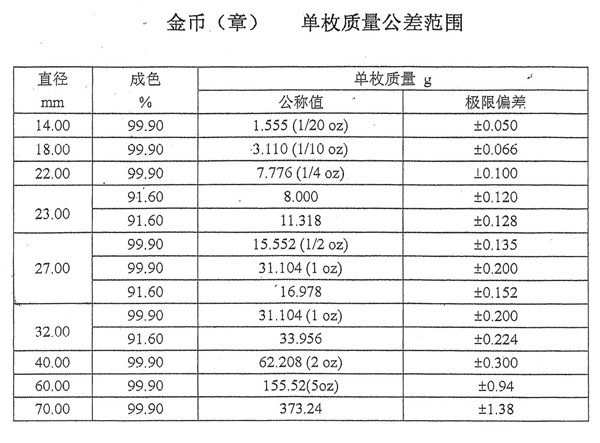 注:以上數(shù)據(jù)參考于上海造幣廠技術(shù)處