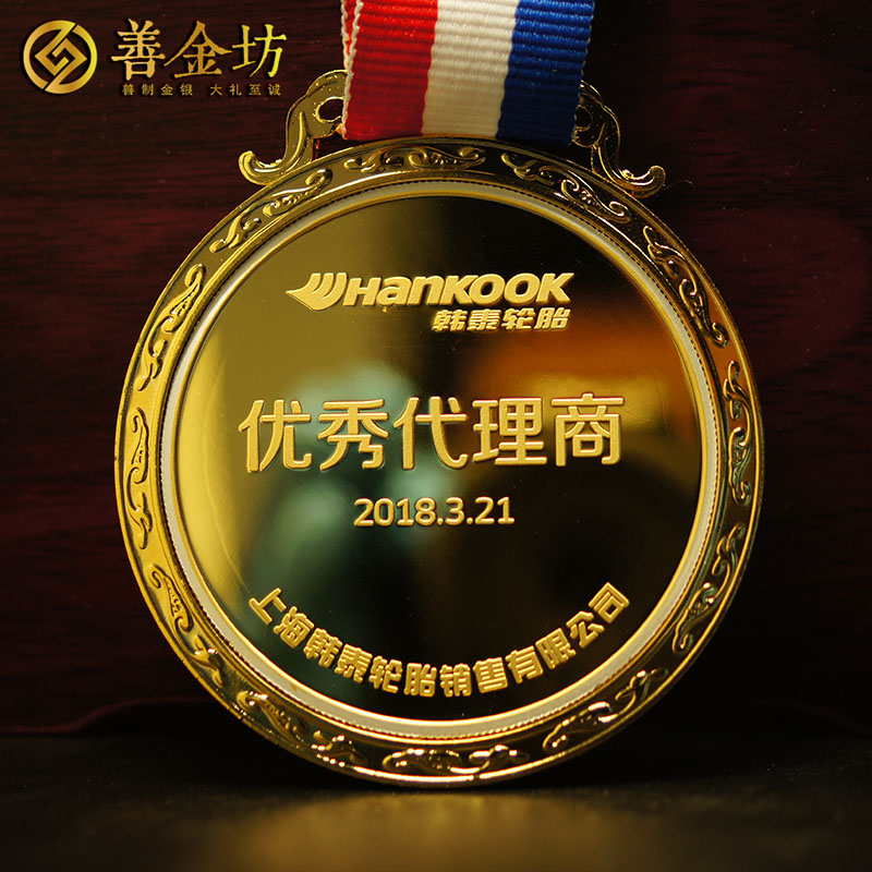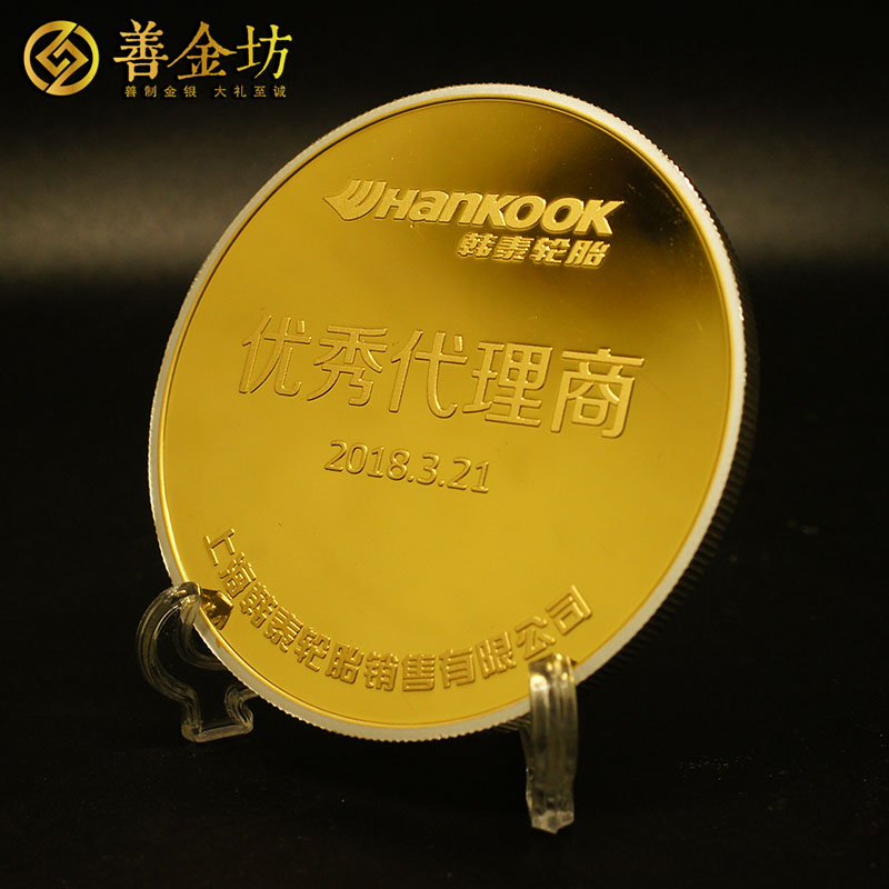 上海韓泰輪胎代理商大會銀鑲金獎?wù)耞 獎?wù)轮谱?紀(jì)念章制作 金銀幣定制 獎牌定制 會議表彰 員工福利