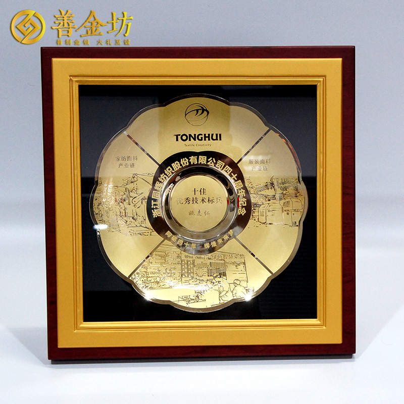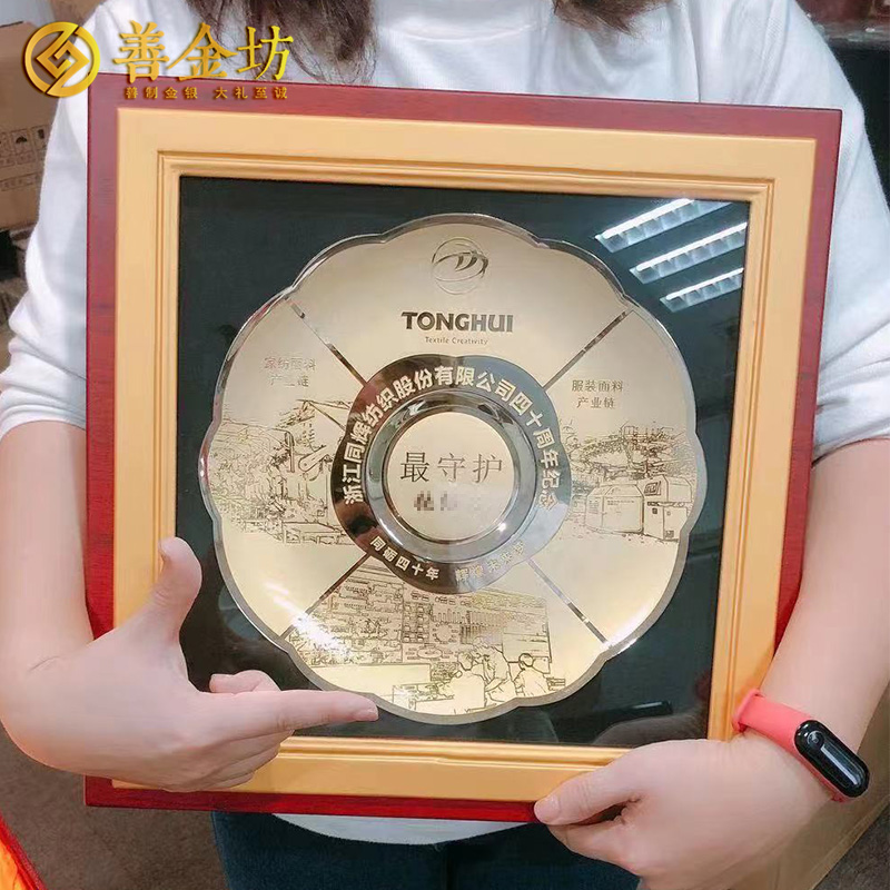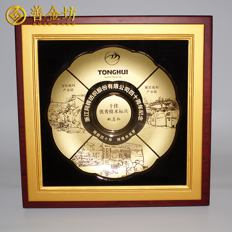 浙江同輝紡織40周年定制銅盤擺件