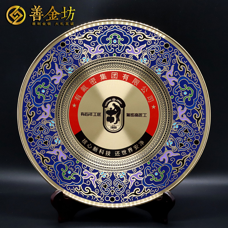 浙江有氟密集團定制景泰藍獎盤_紀念盤定做 獎牌紀念品定制 感謝牌禮品定制