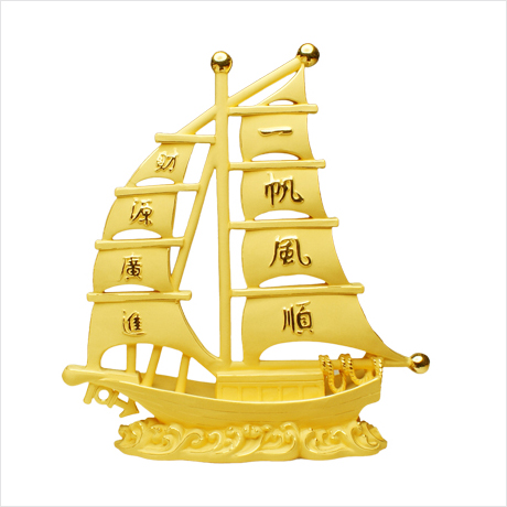 一帆風(fēng)順 絨沙金工藝擺件 純金純銀定制 金銀立體擺件
