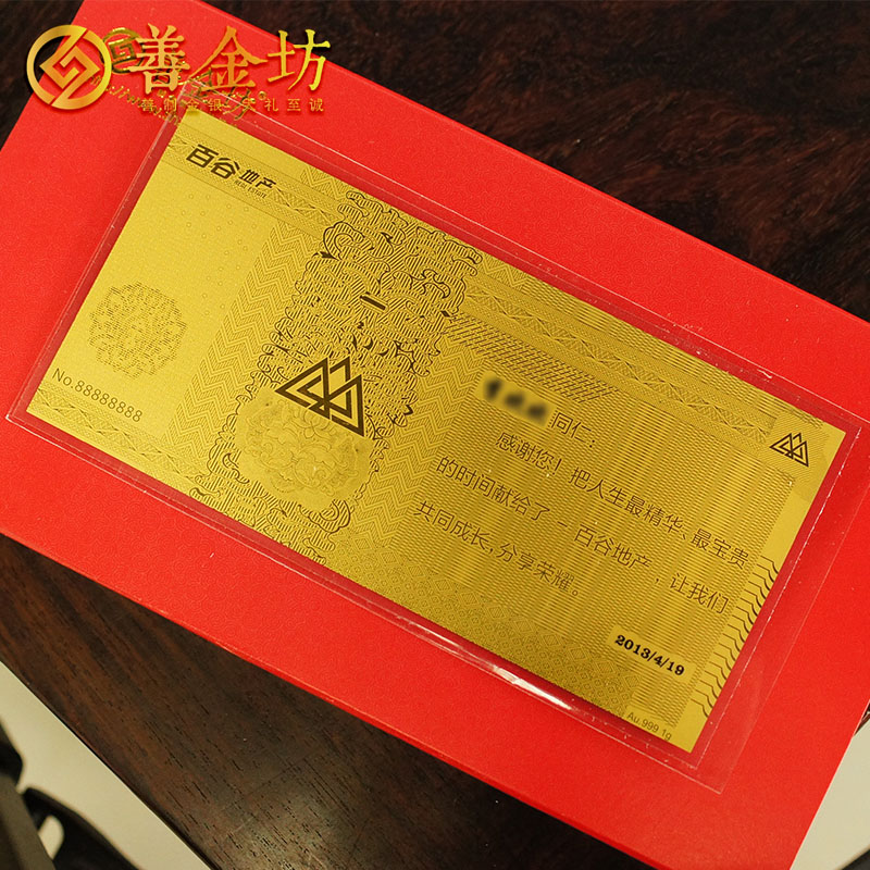 北京百谷地產(chǎn)1克金鈔_金鈔定制 銀鈔制作 加工紀(jì)念鈔 員工福利