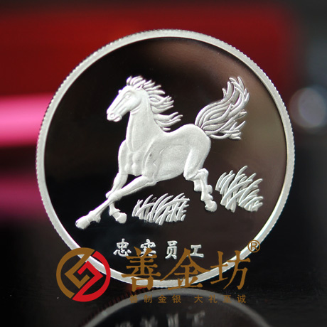 浙江普天集成_ 紀(jì)念幣制作 銀幣制作 紀(jì)念章制作 制作紀(jì)念幣 定做銀幣 獎(jiǎng)牌制作。正面圖案:“浙江普天集成房屋有限公司”、“Ag.999”字樣及公司LOGO;背面圖案:“忠實(shí)員工”字樣及生肖馬圖案。銀章直徑35毫米,成色99.9%,含純銀30克(另有20g 15g 直徑均是35mm)。 該紀(jì)念章由上海善金坊實(shí)業(yè)有限公司制造。成色標(biāo)準(zhǔn),重量合格,質(zhì)量精制。謹(jǐn)此證明。