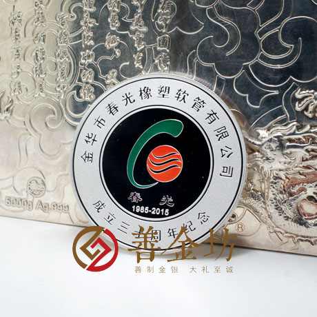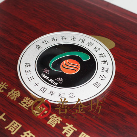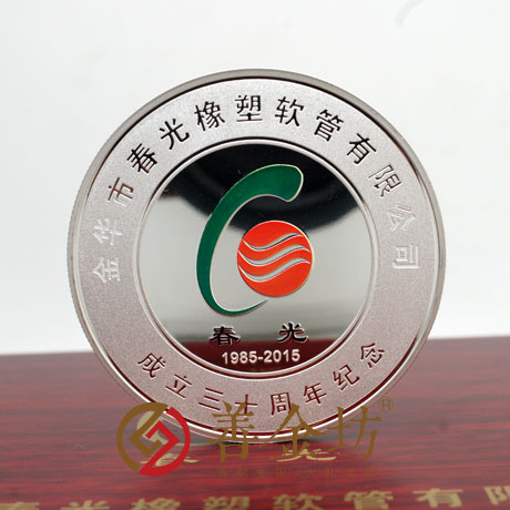 正面圖案:鐫有“金華市春光橡塑軟管有限公司”、“成立三十周年紀(jì)念”、“1985-2015”等字樣及l(fā)ogo圖案。背面圖案:雕刻春光公寓大樓圖案。