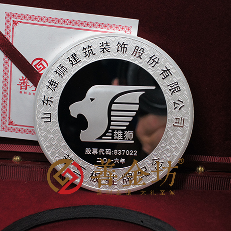 簡(jiǎn)介:山東雄獅建筑裝飾股份有限公司新三板掛牌銀紀(jì)念章由999純銀鑄造,成色標(biāo)準(zhǔn),重量合格,質(zhì)量精制。