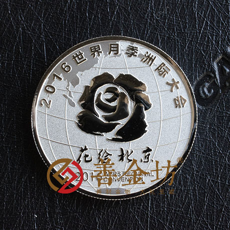 正面圖案:鐫有“2016世界月季洲際大會”、“2016 WFRS REGIONAL CONVENTION”字樣及l(fā)ogo圖案。