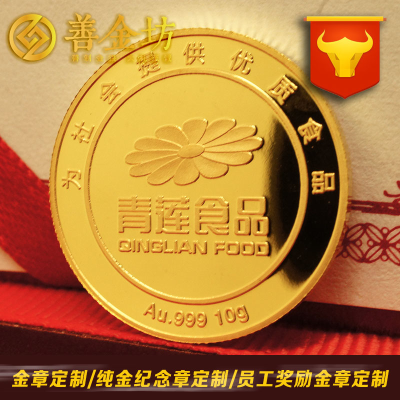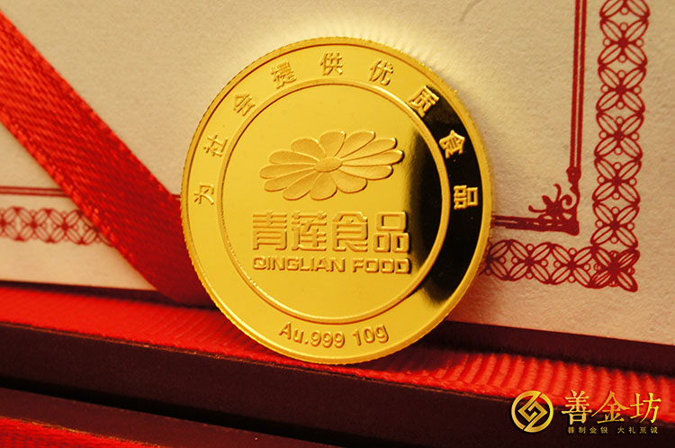 簡介:青蓮食品純金紀(jì)念章由999純金鑄造,成色標(biāo)準(zhǔn),重量合格,質(zhì)量精制。