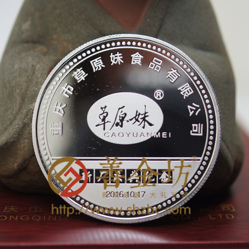 為慶祝重慶市草原妹食品有限公司新廠慶典紀(jì)念,特制作此章以資紀(jì)念。正面圖案:“重慶市草原妹食品有限公司”、“新廠慶典紀(jì)念”、“201.10.17” 字樣及公司LOGO;背面圖案 :“真牛油 真純凈”、“Ag.999 20g”字樣及公司LOGO。銀章直徑40毫米,成色99.9%,含純銀20克。 該紀(jì)念章由上海善金坊實(shí)業(yè)有限公司制造。成色標(biāo)準(zhǔn),重量合格,質(zhì)量精制。謹(jǐn)此證明。