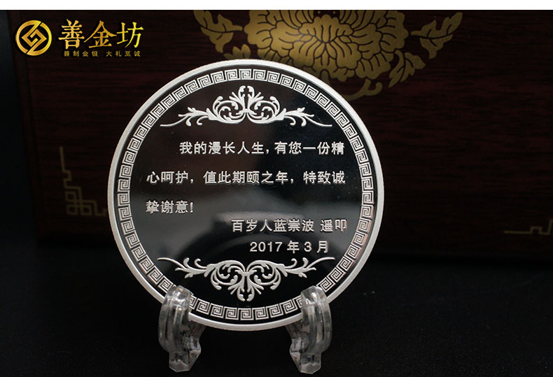 四川省祝壽銀章40克_ 紀念章制作 銀章制作 定做銀章 結婚祝壽