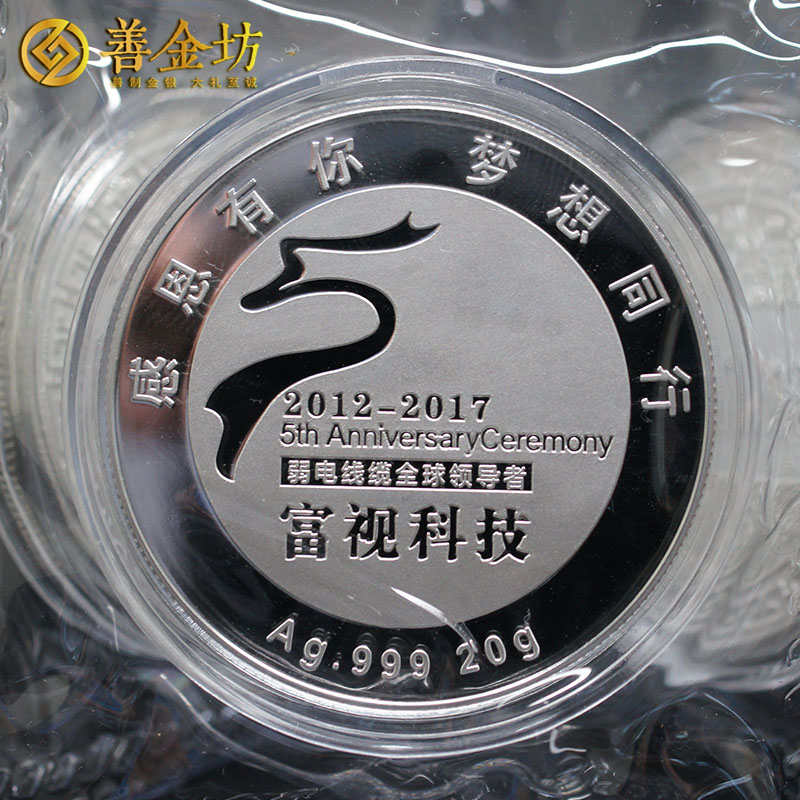 廣東深圳富視科技5周年銀章_ 紀念章制作 紀念章制作 定制紀念章 周年慶典