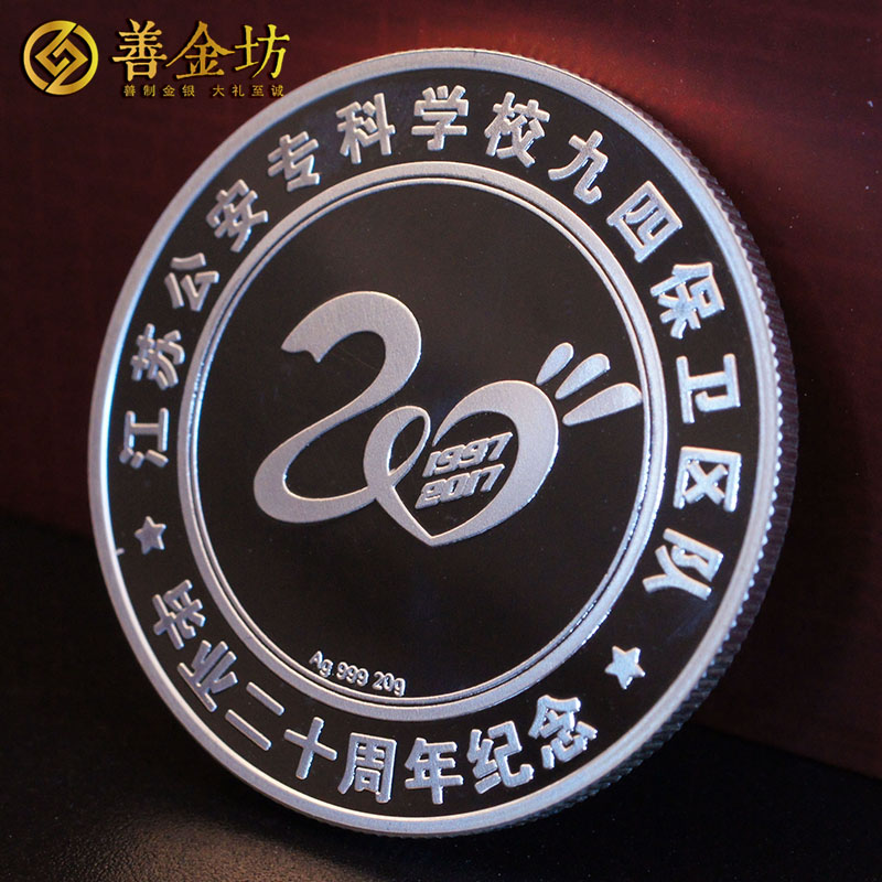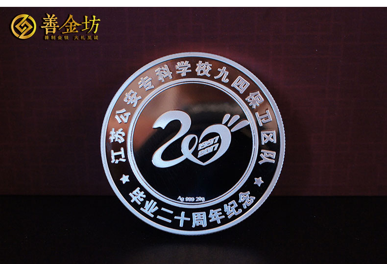 江蘇泰州警官學院20周年同學會銀章_ 定制紀念章 紀念章定制 紀念章制作 同學會紀念