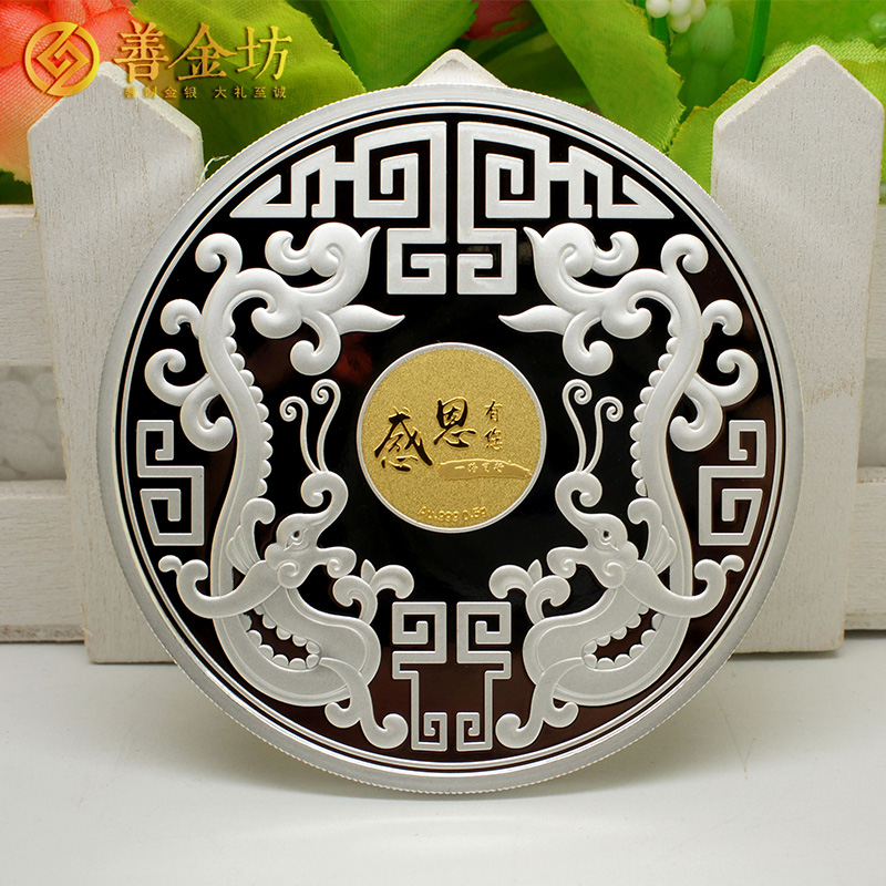 直徑:70mm 重量:銀80克單面鑲金0.5克
