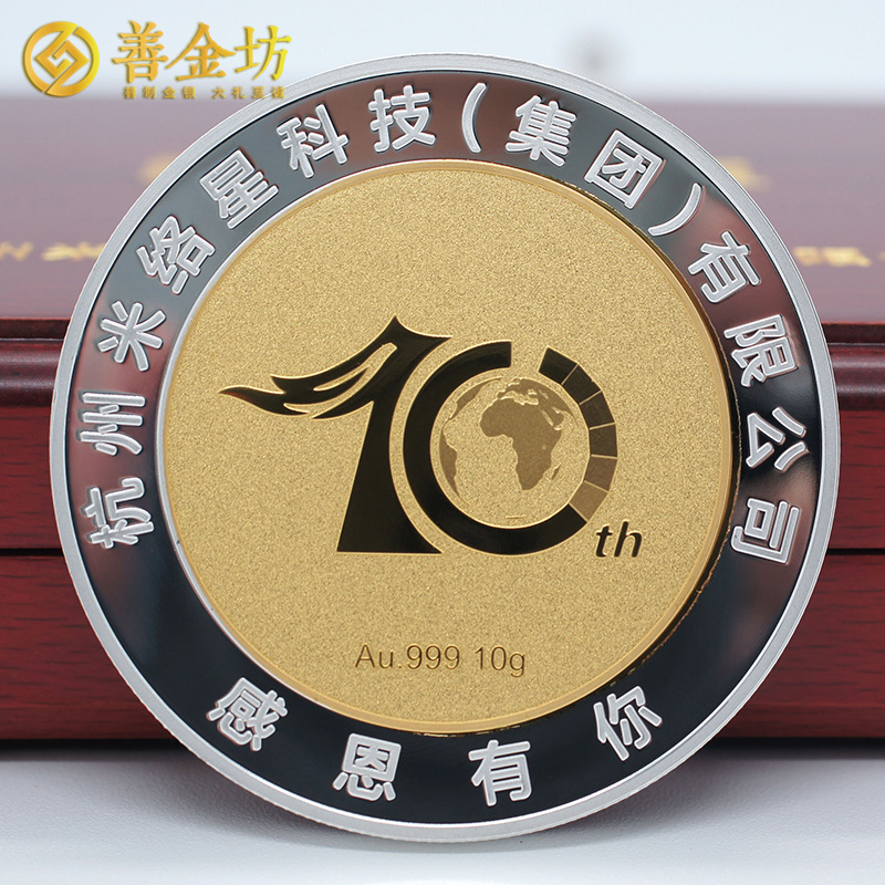 浙江杭州米絡(luò)星十周年銀鑲金紀(jì)念章_ 定制金章 金章制作 定制紀(jì)念章