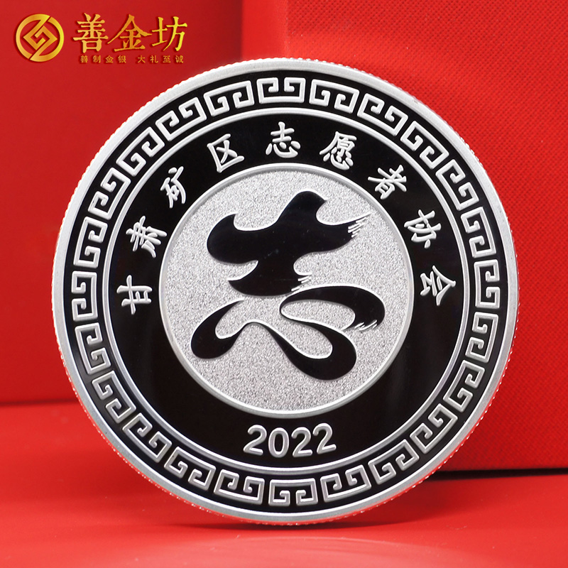 甘肅礦區(qū)志愿者協(xié)會定制紀念章_ 定做紀念銀幣 銀幣定制 紀念章制作