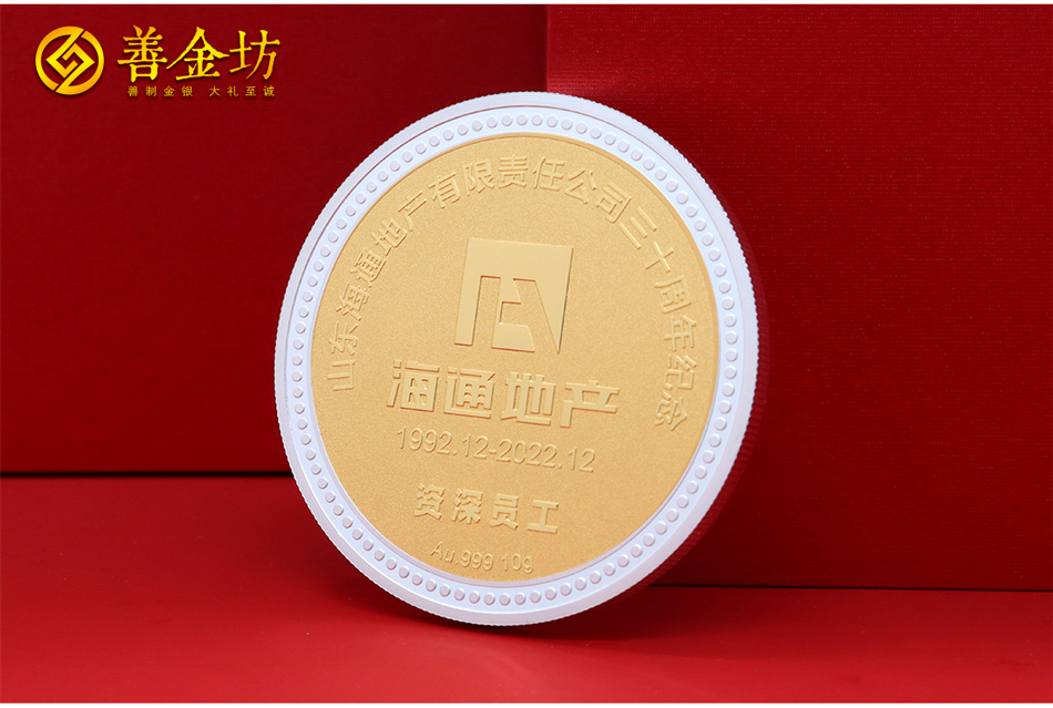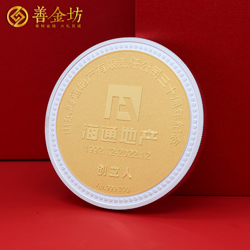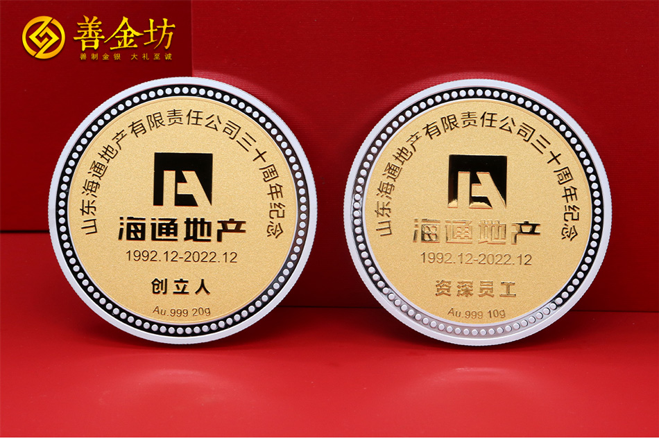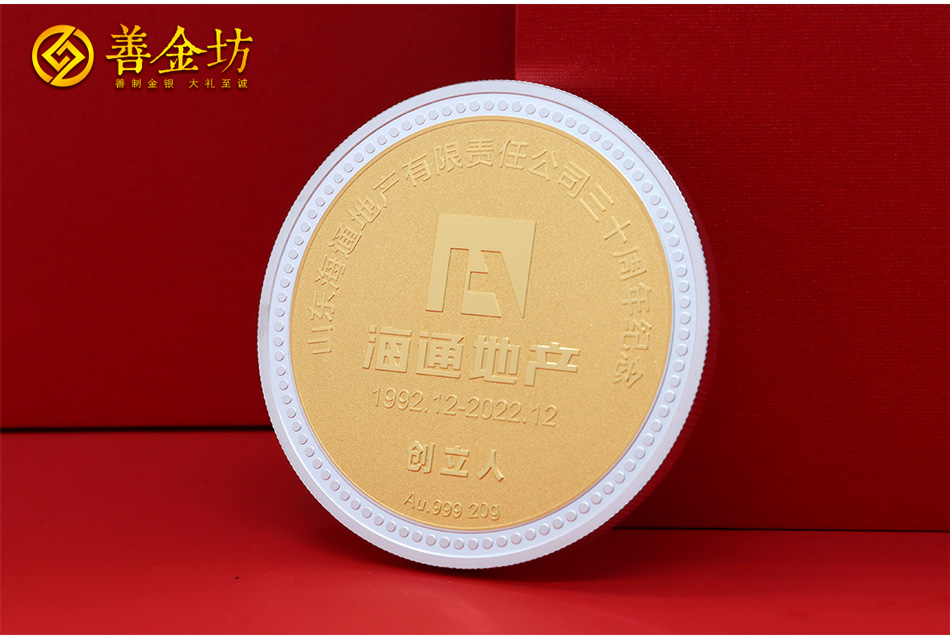 山東海通地產(chǎn)三十周年定制銀鑲金紀(jì)念章_ 紀(jì)念金幣制作 銀幣制作 紀(jì)念章制作 定做銀幣