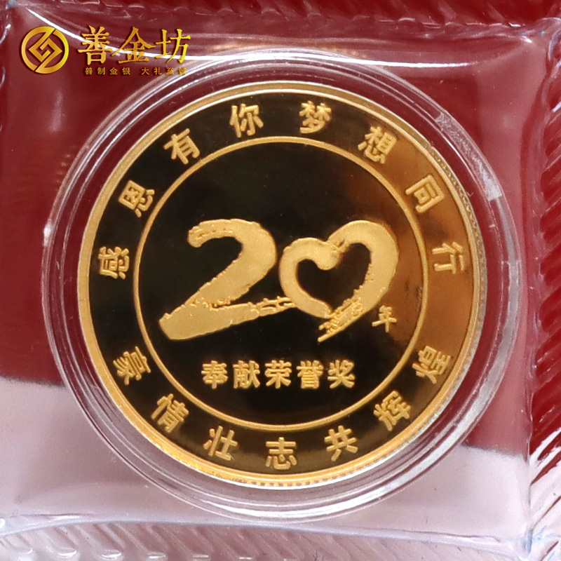 上海飛潮十年二十年員工純金紀念章_ 定做金幣 定制金幣 金幣制作