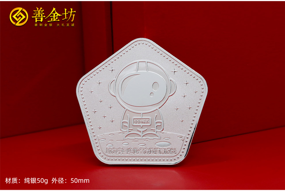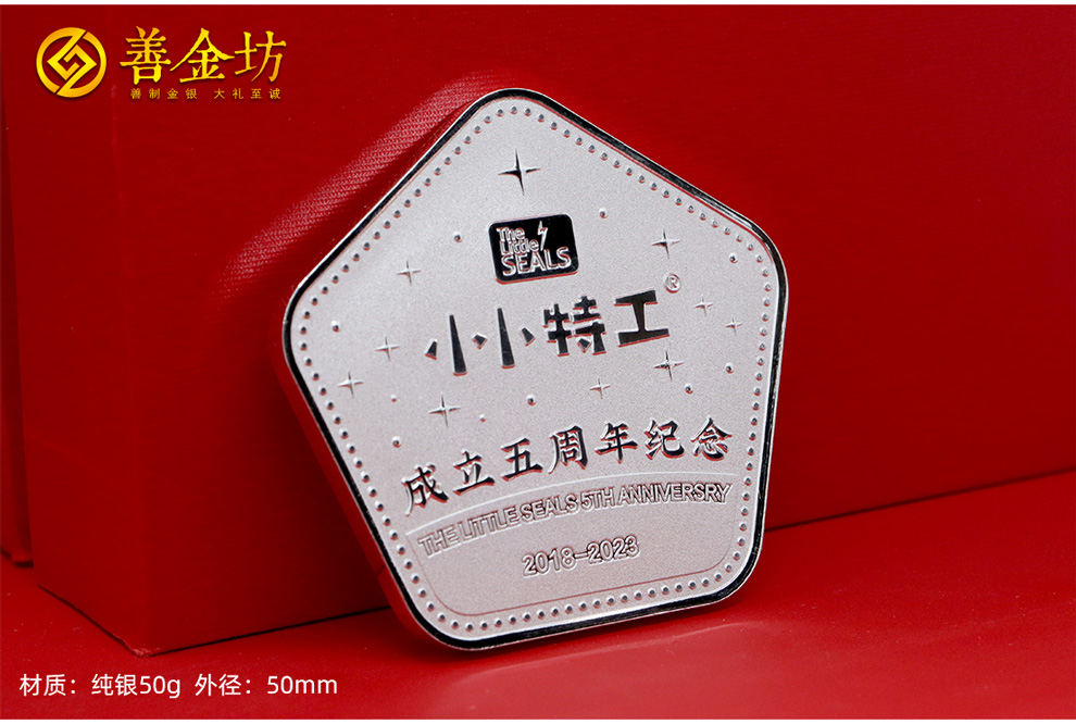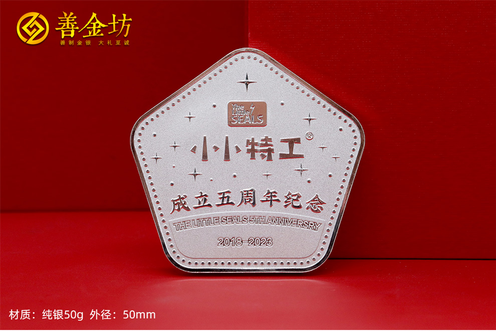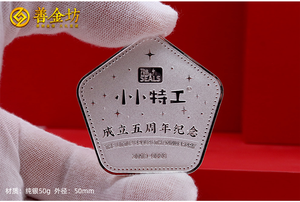 上海小小特工成立五周年定制純銀紀念章_異形紀念章定制 銀幣定制 銀章制作 定制紀念銀幣