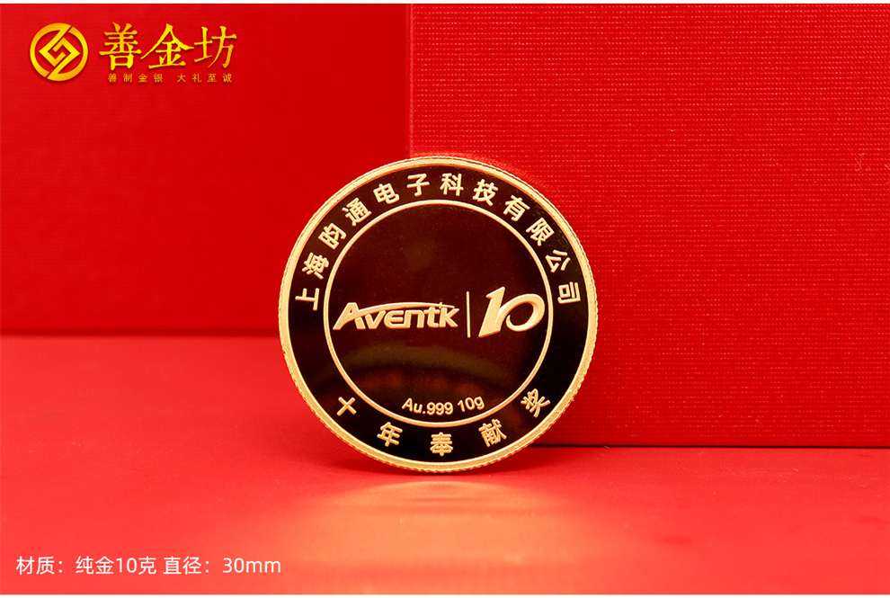 上海昀通電子員工入職五年十年定制紀念章_ 定做紀念銀幣 銀幣定制 定做紀念章 員工福利 銀鑲金紀念章