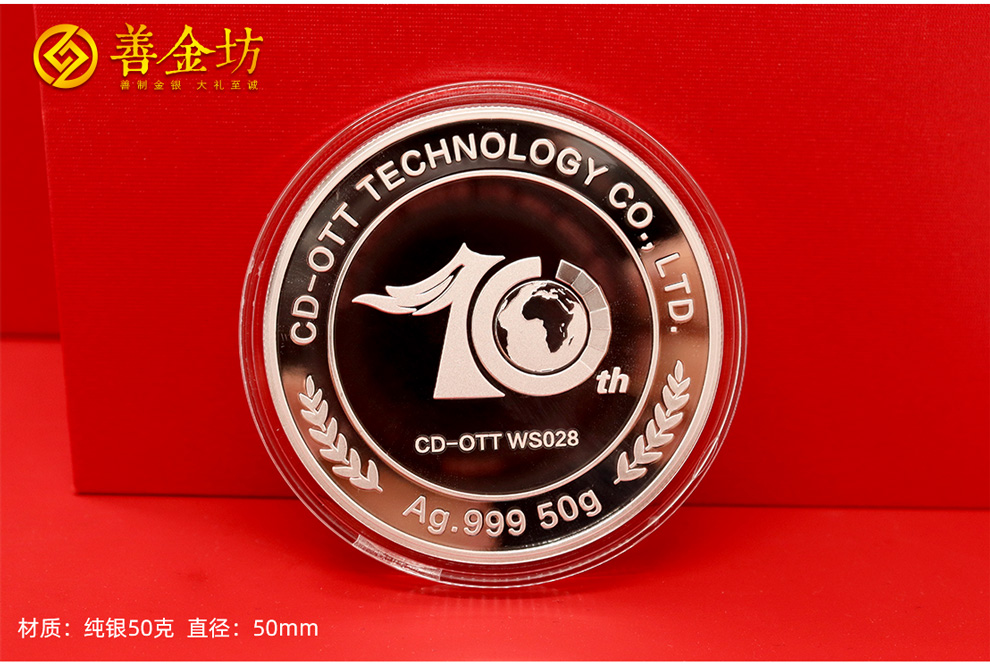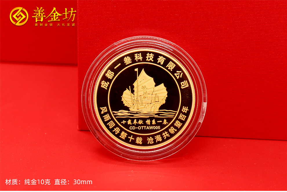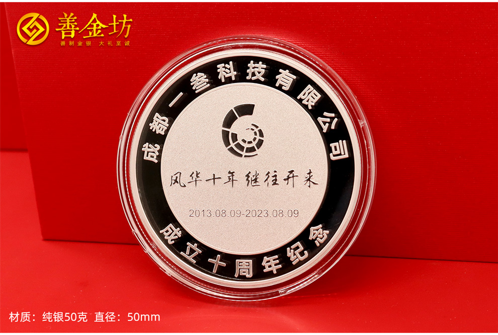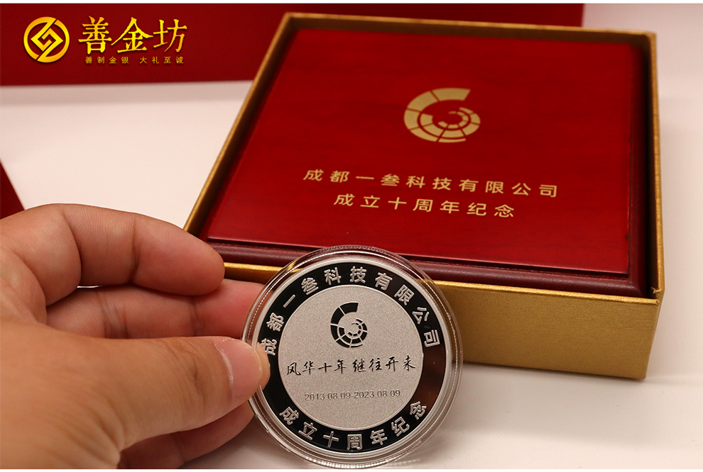 四川成都一叁科技十周年定制金銀紀(jì)念章_ 定制金幣 定做銀幣 紀(jì)念銀幣定制 激光