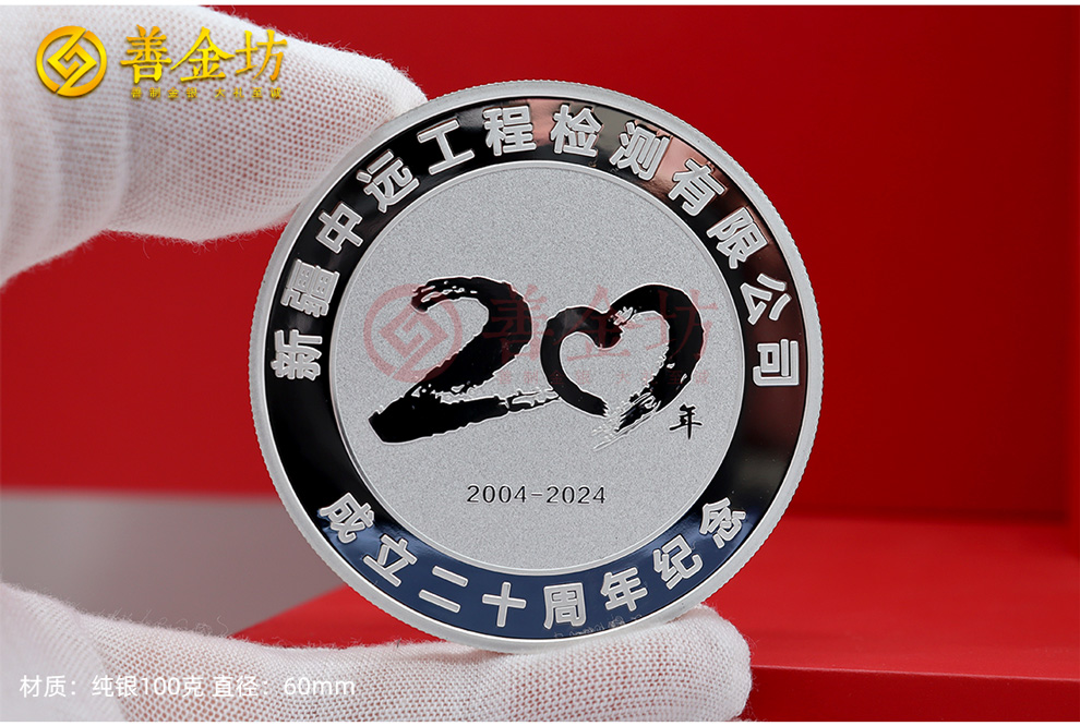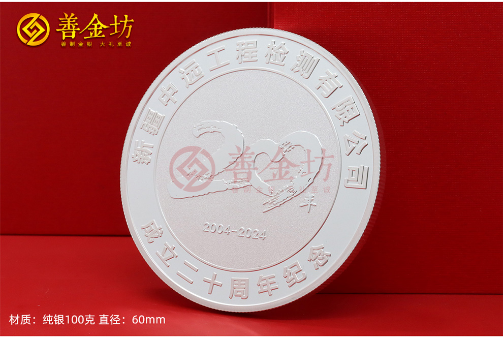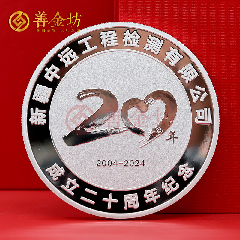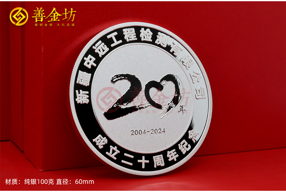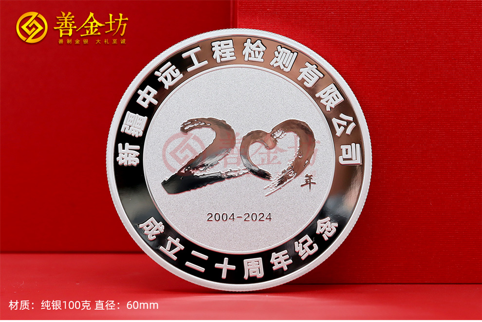 新疆中遠鑒定成立二十周年定制純銀紀念章_ 銀幣制作 定做銀幣 定制銀幣 周年慶典