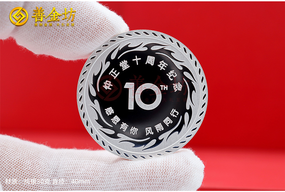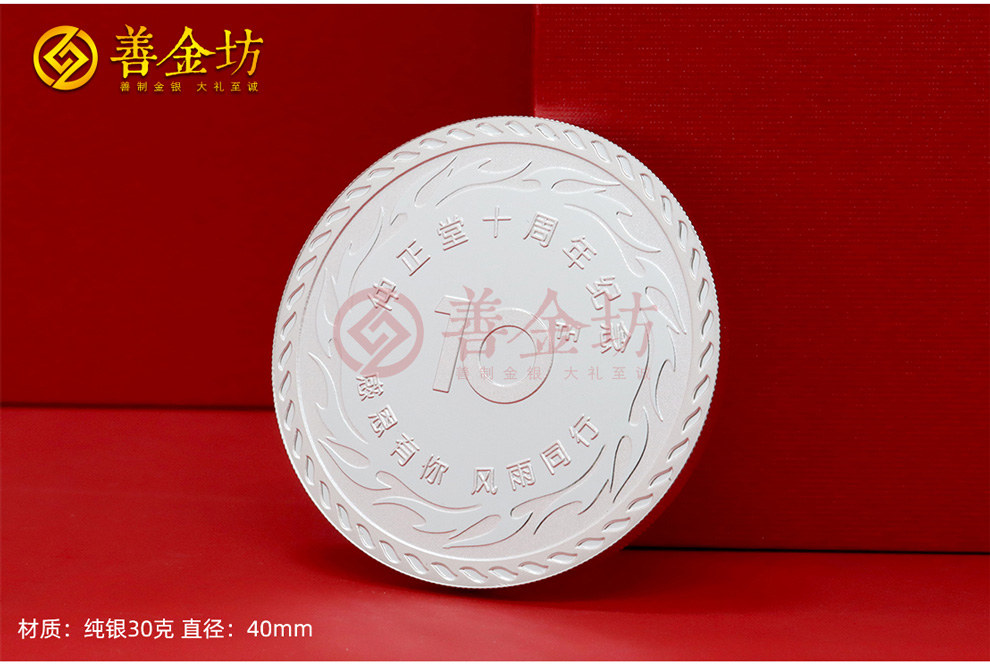 上海仲正堂十周年定制純銀紀念章_ 定做銀幣 定制銀幣 定做紀念章 紀念銀幣定制廠家