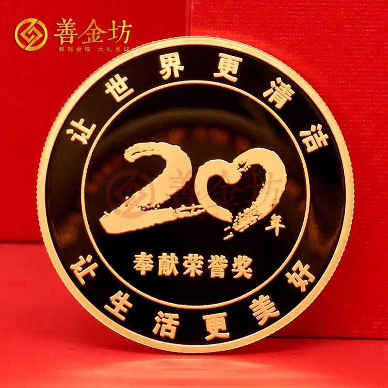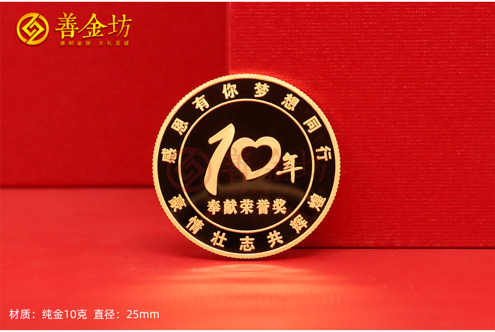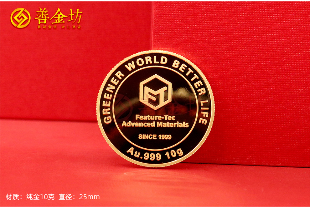 上海飛潮十年二十年員工純金紀(jì)念章_ 定做金幣 定制金幣 金幣制作