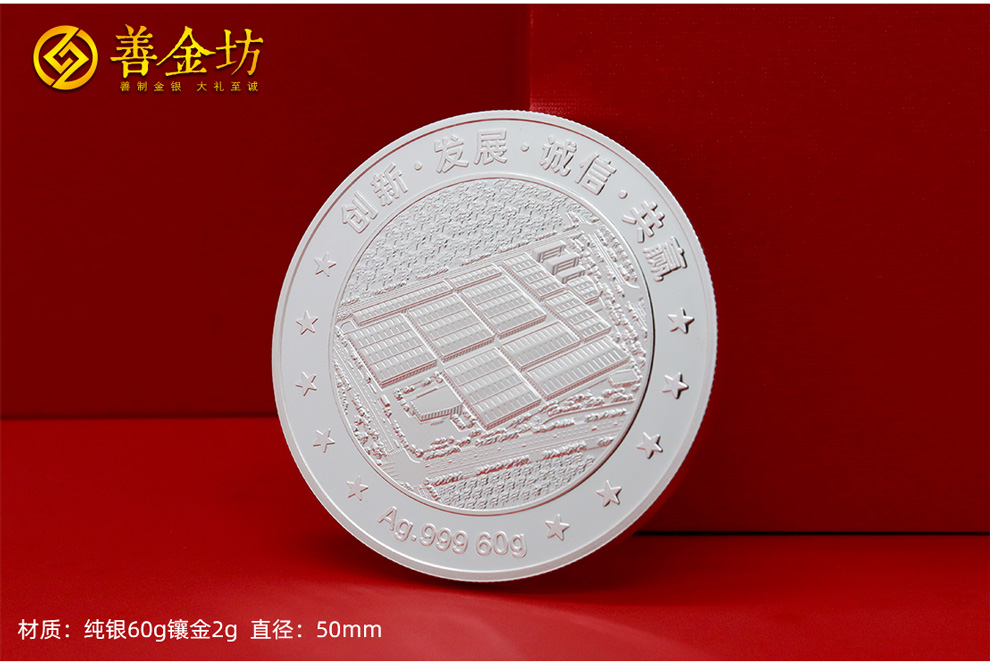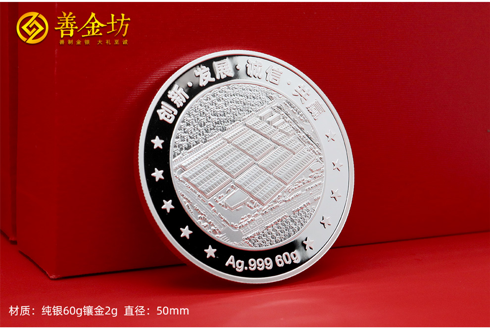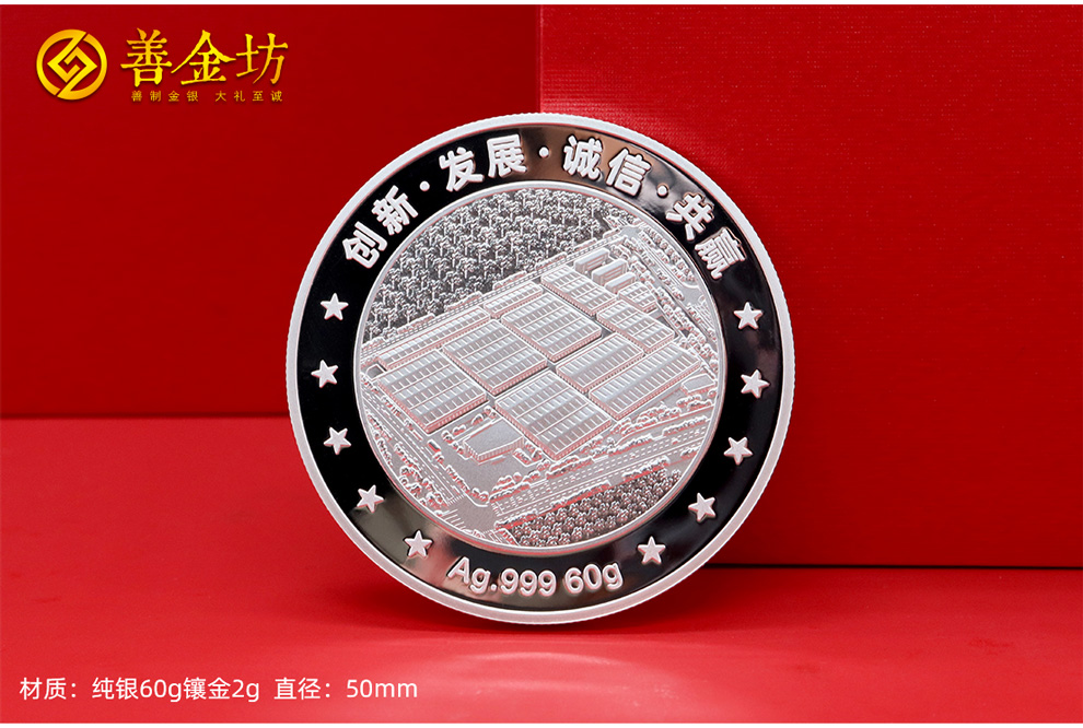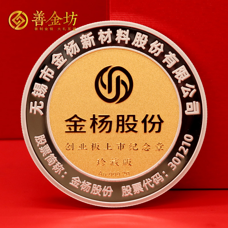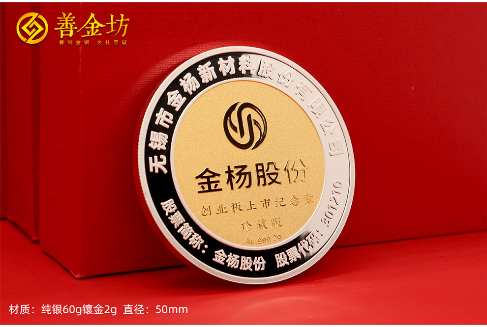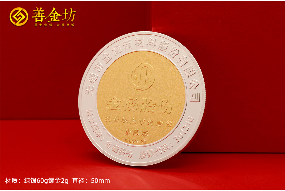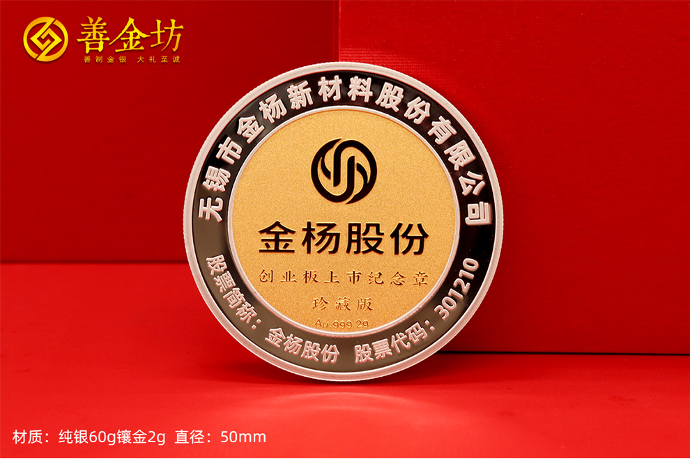 江蘇金楊股份上市定制銀鑲金紀念章60克銀鑲2克金_銀幣定制 銀幣制作 定做銀幣 定制銀幣